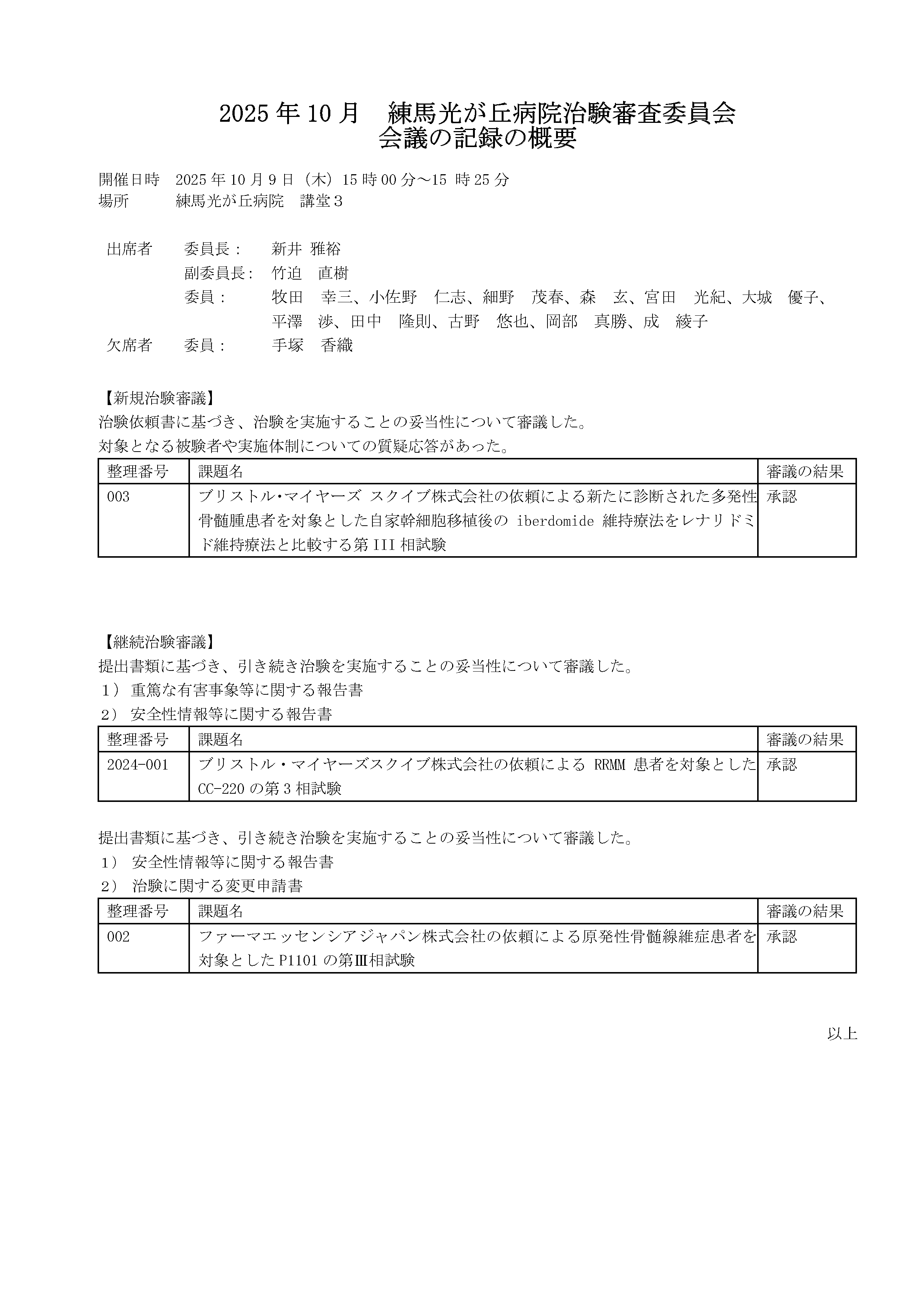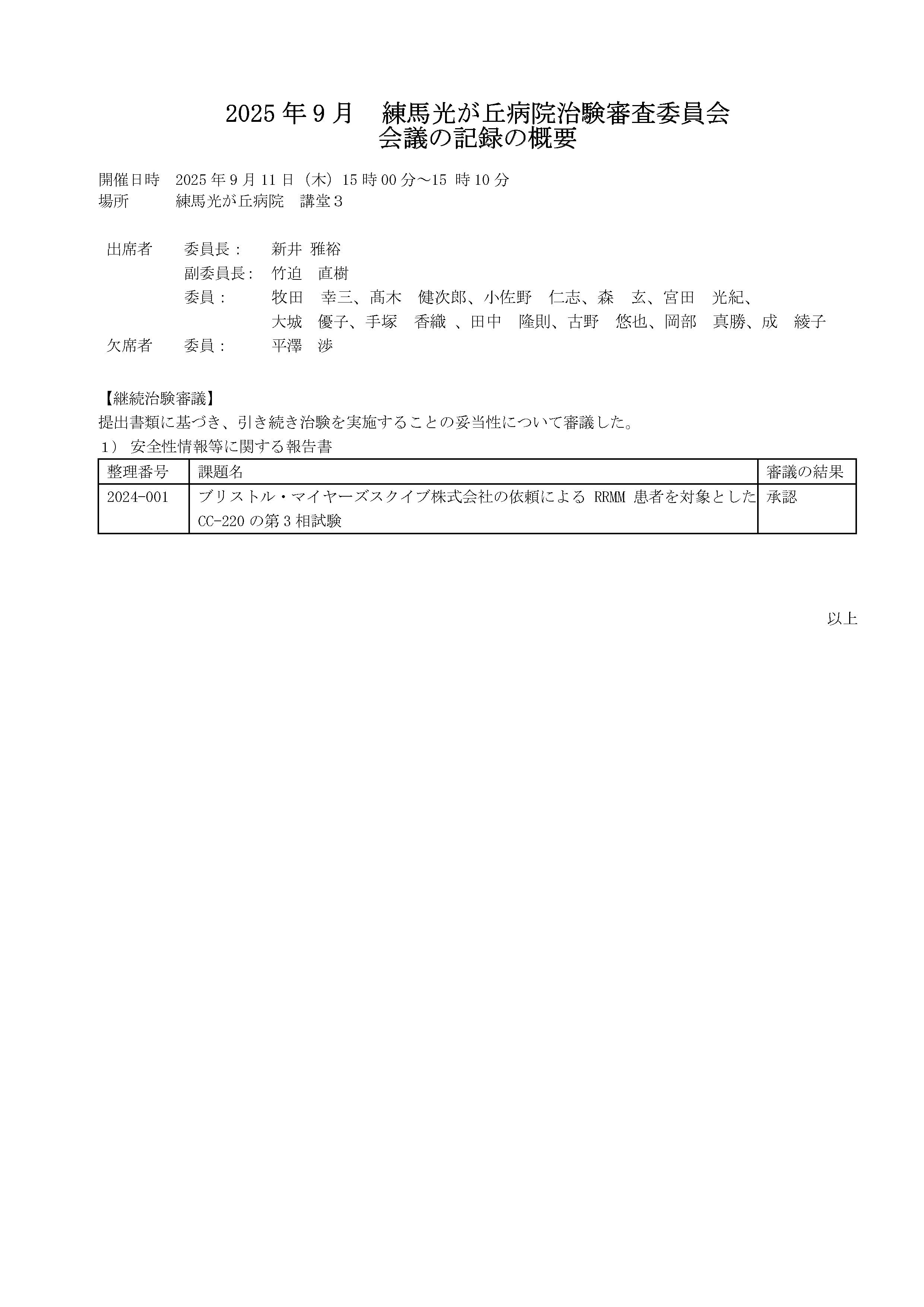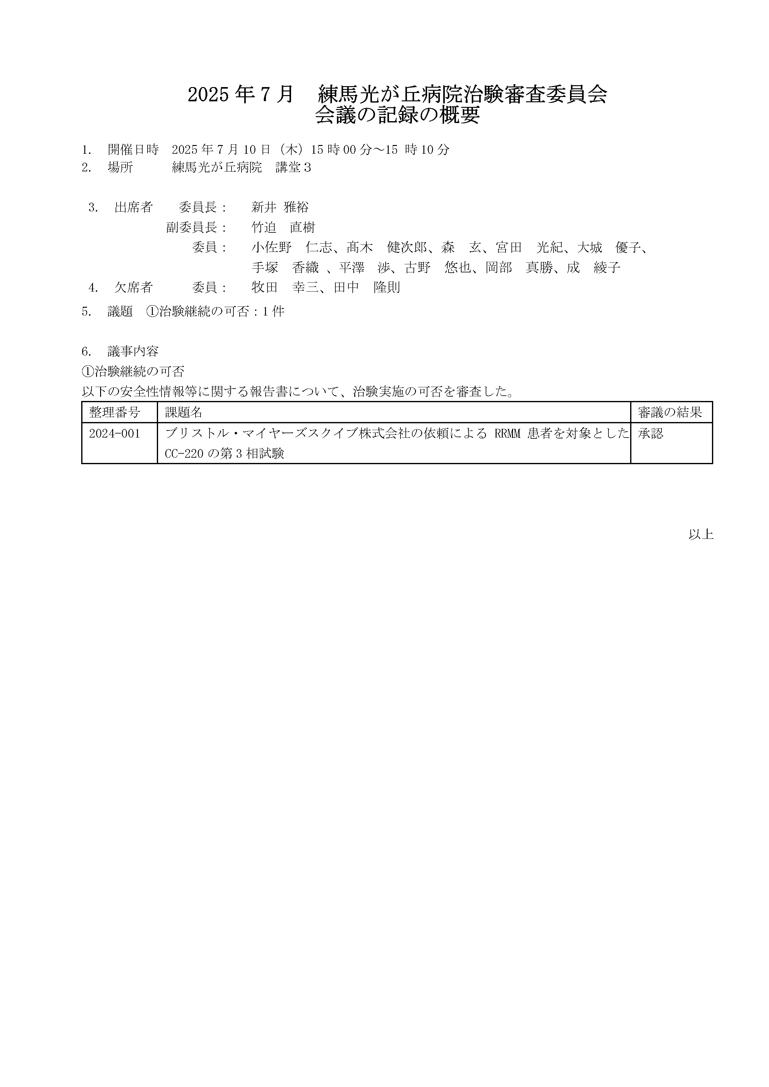練馬光が丘病院 治験事務局
