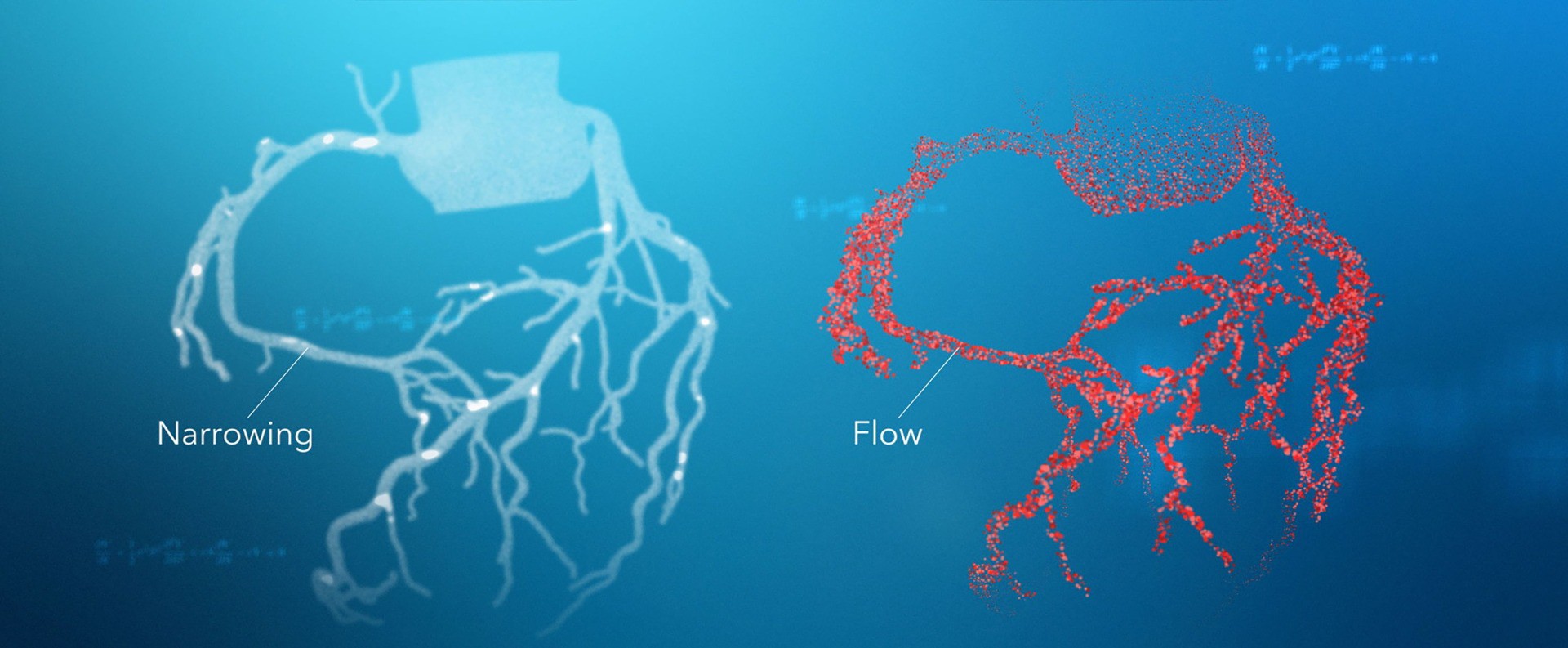 従来は冠動脈CT検査で冠動脈の狭くなった部分(狭窄)が見つかった場合、その部分が“心臓の働きにどの程度影響を与えているのか?”“症状の原因となっているのか?”を追加の侵襲的(体へ直接的負担を強いる)カテーテル検査や他の検査で調べる必要がありました。